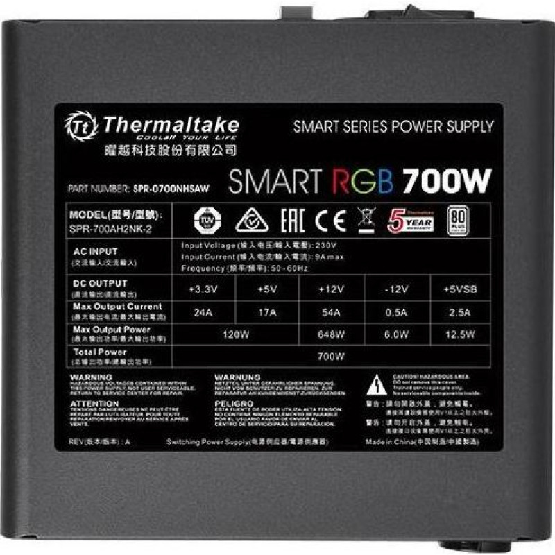 Thermaltake Smart 700w rgb (80+ 230v eu, 2xpeg, 120mm, single rail)