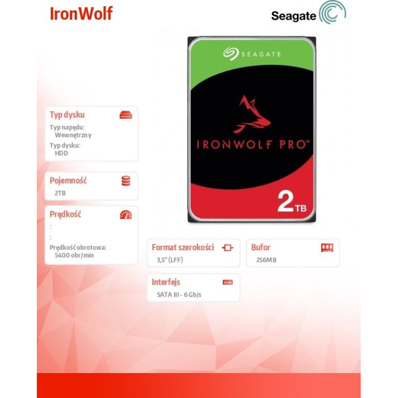 Seagate Dysk ironwolf 2tb 3,5 256mb st2000vn003