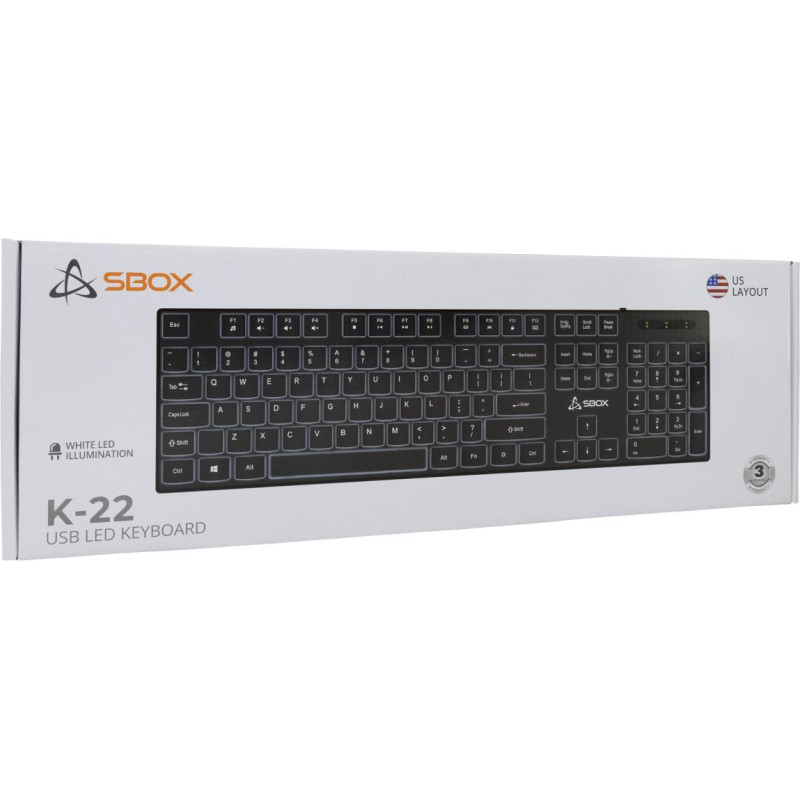 Your shopping cart is empty! The SBOX office keyboard combines durability with style, featuring a full layout, membrane switches, and white LED illumination. Built for comfort, it includes adjustable legs and a 1.5m USB cable for easy connection to Windows and macOS. Compact yet robust, with a lifespan of 10 million keystrokes, it’s perfect for professionals seeking reliable performance and simplicity.