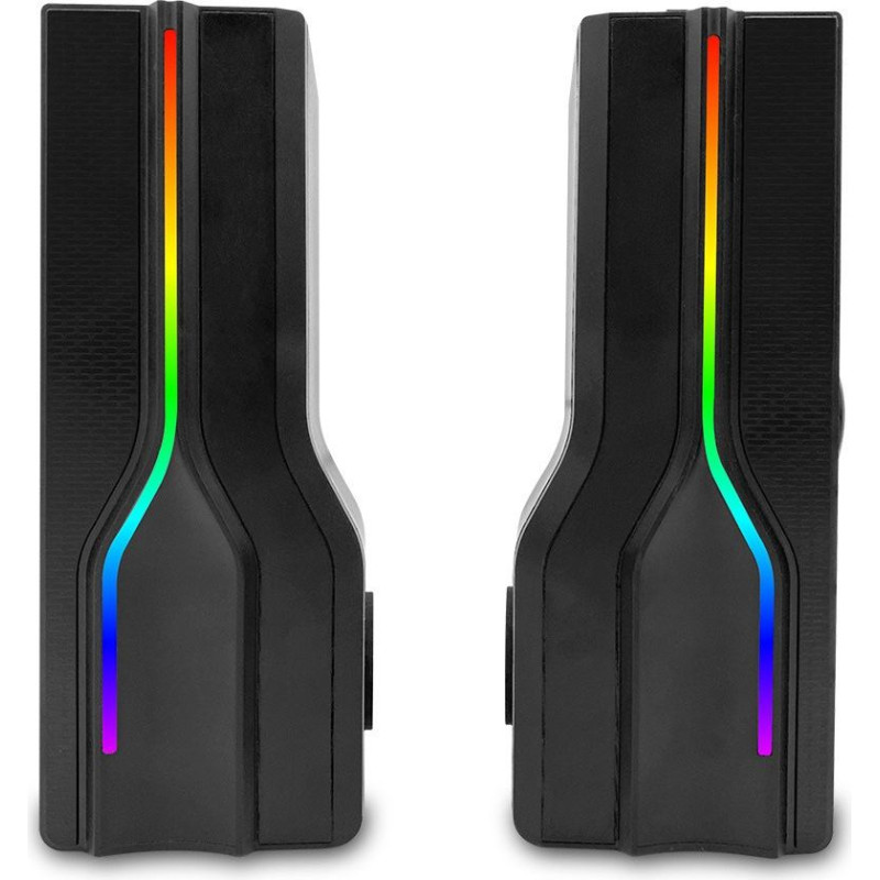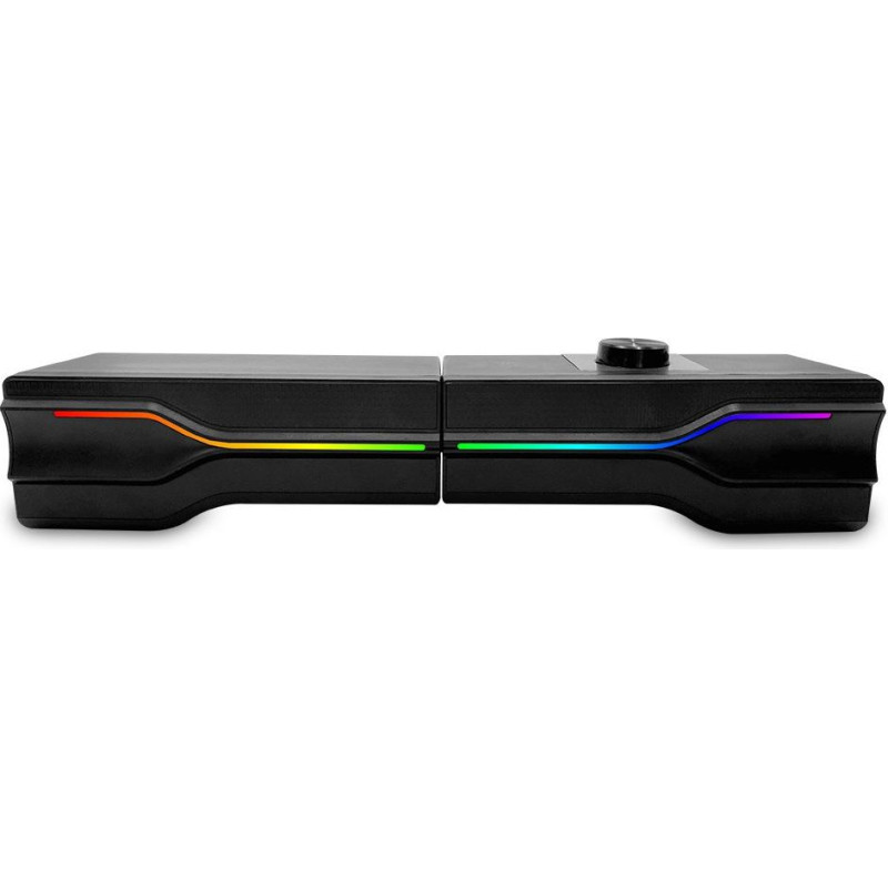 Jūsu iepirkumu grozs ir tukšs! | • Stereo skandes geimeriem • Unikāla īpašība: pārveidošana par saundbāru • Divu skaņas avotu režīms: līnijas ievade un Bluetooth 5.0 • Mūzikas jauda: RMS 8W, PMPO 300W • 2 x 2” draiveru bloki • Frekvences reakcija: 180 ~ 20000 Hz • Pieskāriena maināmais RGB apgaismojums • Vada garums: ~120cm • Audio ieeja: stereo ligzda 3,5 mm, Bluetooth 5.0 • Barošana no USB porta • Skandes izmēri (atsevišķi): 85 x 195 x 75 mm / kad pārveidots par saundbāru: 380 x 85 x75 mm • Svars: 671g |