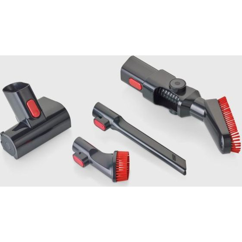 Jūsu iepirkumu grozs ir tukšs! | Funkcijas · Ekstrēma sūkšanas jauda 24 kPa, pateicoties papildu Turbo pakāpes četriem jaudas līmeņiem maksimālai sūkšanas jaudai un absolūtai tīrībai visā mājā. · Inovatīva ātrās uzlādes sistēma akumulatora uzlādēšanai mazāk nekā vienā stundā. · 3.000 mAh Power X-Change tehnoloģija nodrošina akumulatora darbības laiku līdz 60 minūtēm (attiecas uz ECO režīmu) · Absolūti universāls, kas ietver turbo polsterējuma uzgali, maināmu mēbeļu uzgali un garu spraugu uzgali grūti sasniedzamām vietām. · 99,98% alergēnu filtrēšana, pateicoties HEPA13 filtram un automātiskajam putekļu piepildījuma indikatoram. Tehniskie dati Kabeļa garums: 1400 mm Filtra ieliktnis: HEPA 13 Skaņas jaudas līmenis: 79 db (A) Akumulators: Li-Ion Darbības laiks/veiktspēja (ekorežīms): 60 minūtes Digitālais motors: 1 Jauda: 450 W Svars: 4132 g |