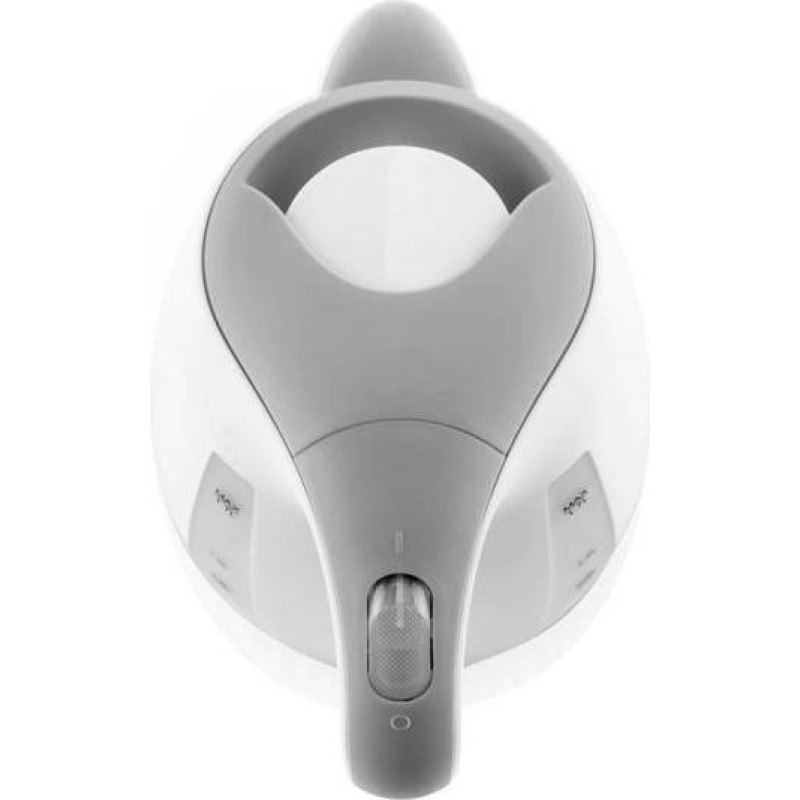 | Funkcijas Grozāma pamatne Automātiska izslēgšanās Aizsardzība pret tējkannas ieslēgšanu, kad tā ir tukša Neslīdošas pēdiņas Ieslēgšanas-izslēgšanas slēdzis Gatavības signāls Strāvas indikators Pildīšana caur vāku un snīpi Tehniskie dati Jauda: 2200 W Strāvas padeve: 220-240V 50-60Hz Tilpums: 1,7L Sildītāja tips: plakans, slēpts Iebūvēts filtrs Automātiska izslēgšanās, kad ūdens vārās Kabeļa uzglabāšana Kabeļa garums: 0,75 m |