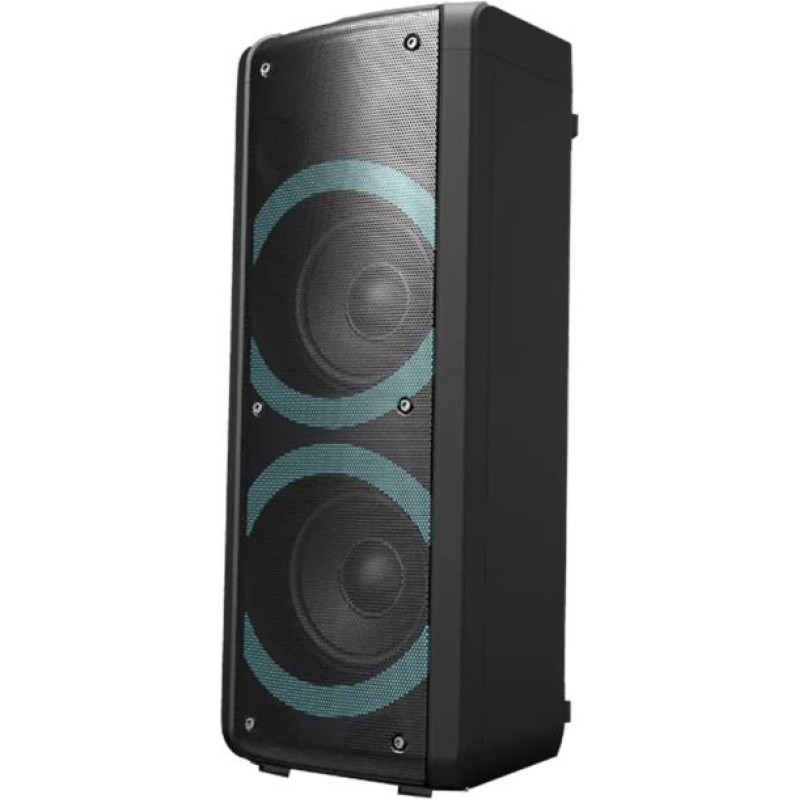 Jūsu iepirkumu grozs ir tukšs! | Bluetooth ballīšu skaļrunis 300 W maksimālā izejas jauda (30 W RMS) 2x 6,5" zemfrekvences skaļruņi USB/Micro SD kartes slots tiešajai MP3 atskaņošanai Divu mikrofonu ieeja (komplektā vadu mikrofons) AUX ieeja TWS funkcija - savienojiet pārī divus skaļruņus stereo skaņai LED funkcija ap skaļruņiem - Apļveida apgaismojums ar 7 gaismas veidiem Iebūvēts atkārtoti uzlādējams litija akumulators (3,600 mAh) - atskaņošanas laiks līdz 3 stundām ar 50% skaļumu Uzlādes laiks 4-5 stundas Maiņstrāvas/līdzstrāvas adapteris ir komplektā Izmērs: 23,00 (p) x 24,70 (d) x 59,00 (a) |
