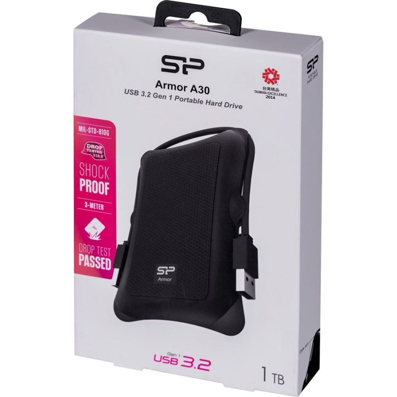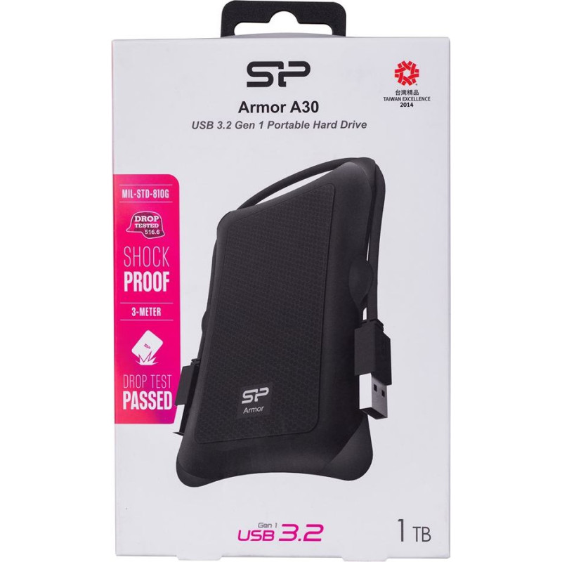 Silicon Power Dysk zewnętrzny hdd silicon power armor a30 (1tb; 2.5"; usb 3.2; 5400 obr/min; black; sp010tbphda30s3a)