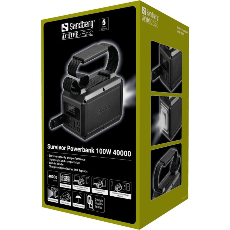 Izcila ietilpība un veiktspēja Viegls un kompakts izmērs Iebūvēts rokturis Uzlādējiet vairākas ierīces, tostarp klēpjdatorus Izturīgs pret laikapstākļiem