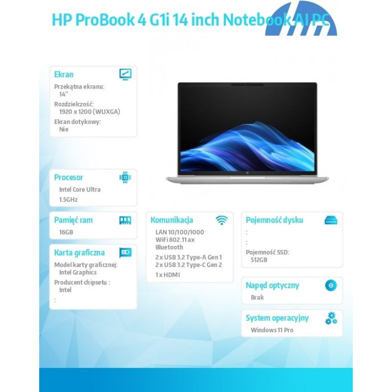 Hp Inc. Notebook probook 4 g1i u5-225u 512gb/16gb/w11p/14.0 c51lget