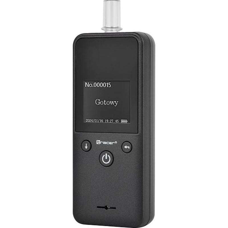 Jūsu iepirkumu grozs ir tukšs! | Platīna elektroķīmiskais sensors Iebūvēts 400 mAh akumulators 300 mērījumiem 1,8 collu LCD displejs Komplektā iekļauts futrālis Komplektā iekļauti 5 iemutņi Bezmaksas ierīces kalibrēšana (līdz 24 mēn. no iegādes datuma) Mērījumu diapazons: BAC 0–500 mg/100 ml |