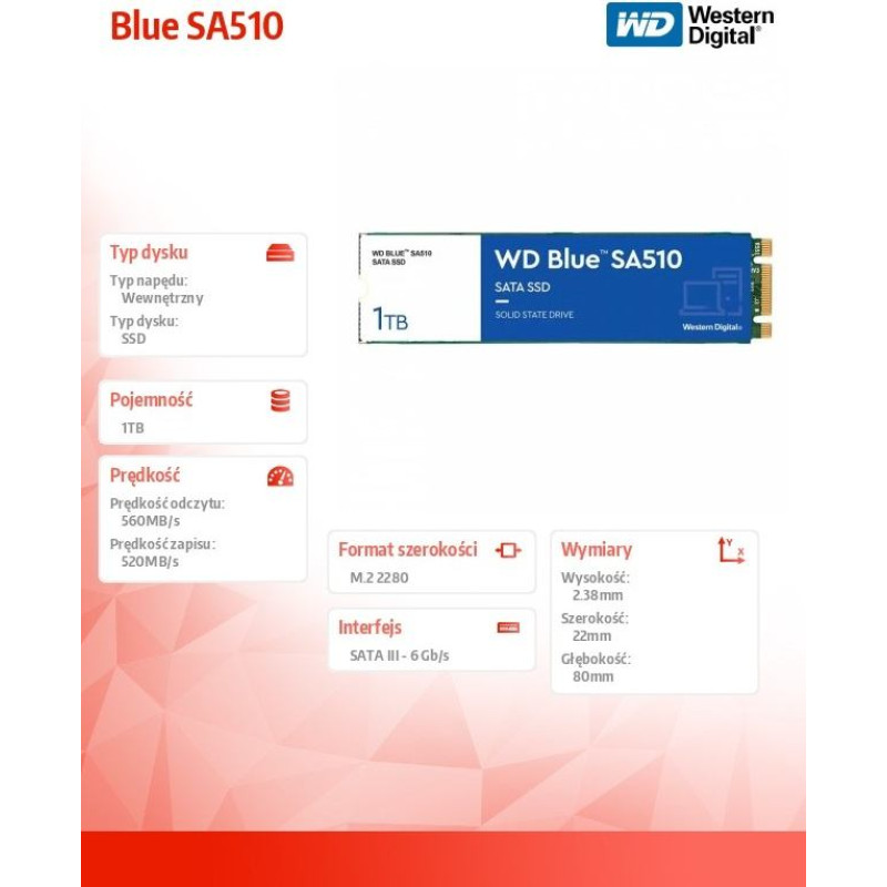 Western Digital Dysk ssd blue 1tb sa510 m.2 2280 wds100t3b0b