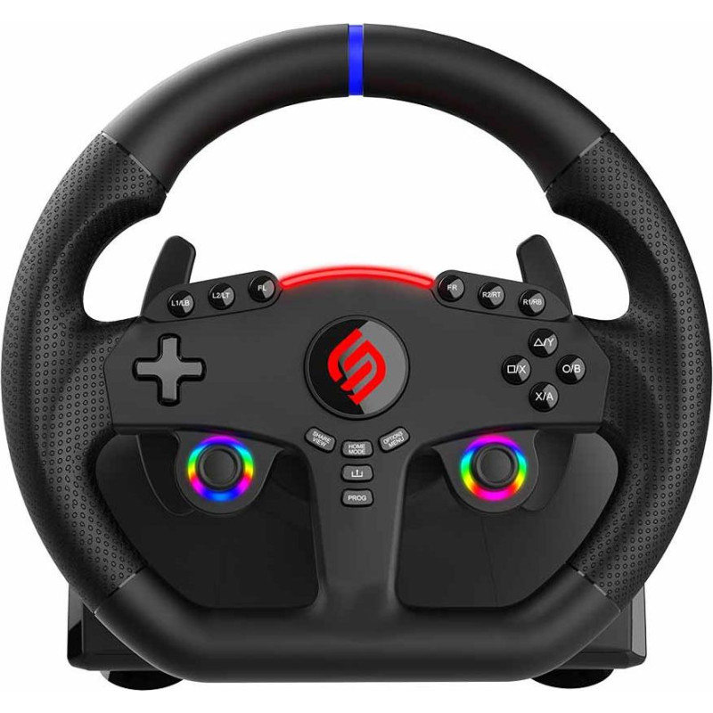Jūsu iepirkumu grozs ir tukšs! Rotācijas leņķis: 270 grādi Stūres diametrs: 27 cm Stūre ar pedāli un lāpstiņām Daudzfunkcionālas divas LED nūjiņas Divkāršs vibrācijas motors un 3 jutības līmeņi Divkārša materiāla apdare ar stūres rokturi