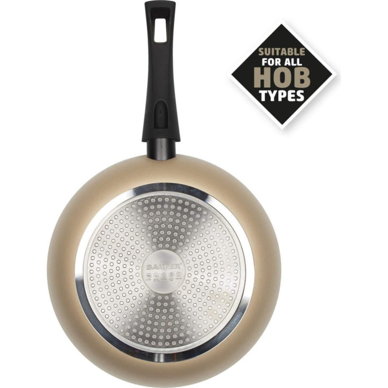 Jūsu iepirkumu grozs ir tukšs! Pagatavojiet gardas maltītes stilīgi ar 28 cm diametra Salter Olympus klāsta cepšanas pannu ar iespaidīgu zelta apdari. Šī daudzpusīgā cepšanas panna ir piemērota visu veidu plīts virsmām, tostarp indukcijas virsmām, un tā ir ideāli piemērota pankūku cepšanai vai pilnīgām angļu brokastīm. Pateicoties augstākās klases nepiedegošajam pārklājumam un alumīnija korpusam, šī cepšanas panna ir izturīga un ideāli piemērota ikdienas lietošanai. Izstrādāta, domājot par lietotāju, nepiedegošajai pannai ir bakelīta mīksti rokturi, kas nodrošina ērtu pārvietošanos virtuvē. Trauku mazgāšana ir vienkārša, pateicoties viegli tīrāmajam pārklājumam; pēc lietošanas pannas var vienkārši nomazgāt ar rokām siltā ziepjūdenī.