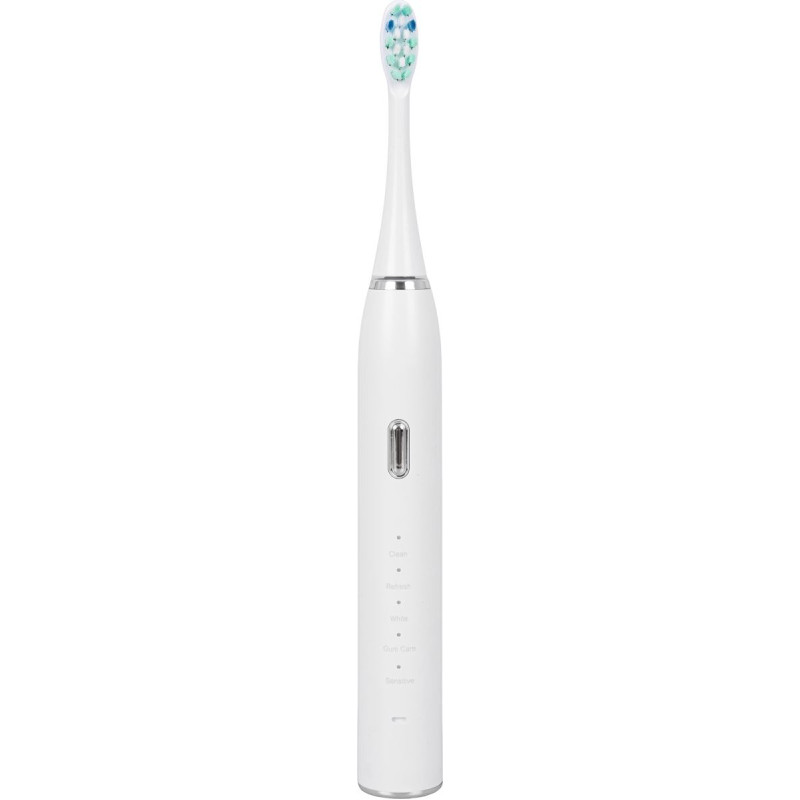 32 000 - 40 000 sitienu minūtē 5 tīrīšanas režīmi Uzlabots taimeris ik pēc 30 sekundēm Darba ilgums līdz 45 dienām Automātiska izslēgšanās pēc 2 minūtēm Komplektā 3 zobu birstes uzgaļi Uzlādes indikators USB induktīvās uzlādes bāze
