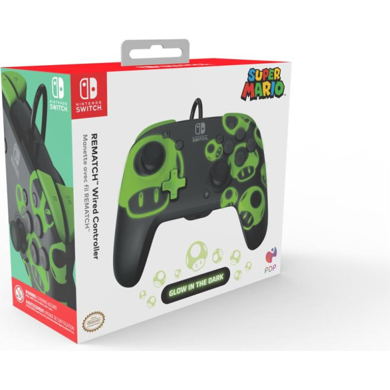 Jūsu iepirkumu grozs ir tukšs! PDP : Rematch - Wired Controller Super Mario 1UP (Glows in the dark) [For Switch]